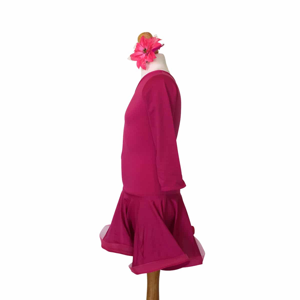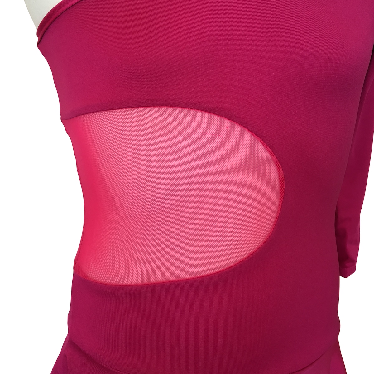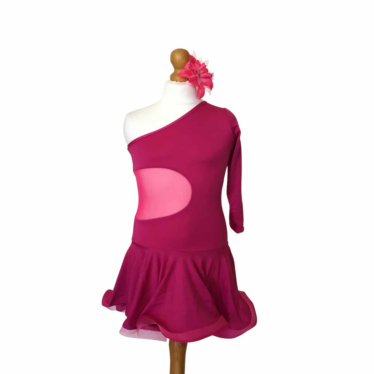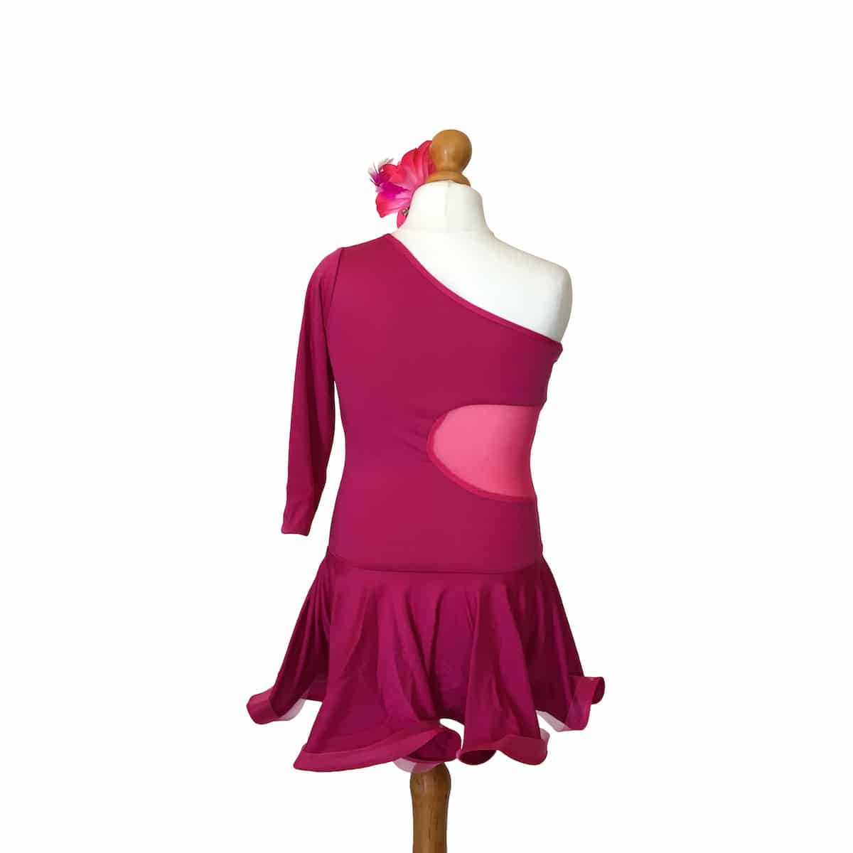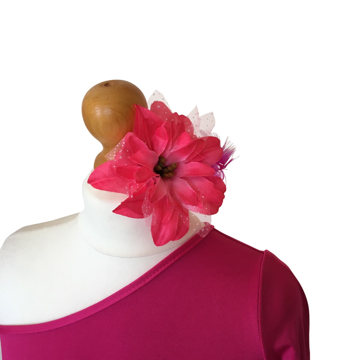 Abito da ballo intero con monospalla e retina laterale ovale. La gonna presenta una balza in organza. Il fiore per capelli è incluso.